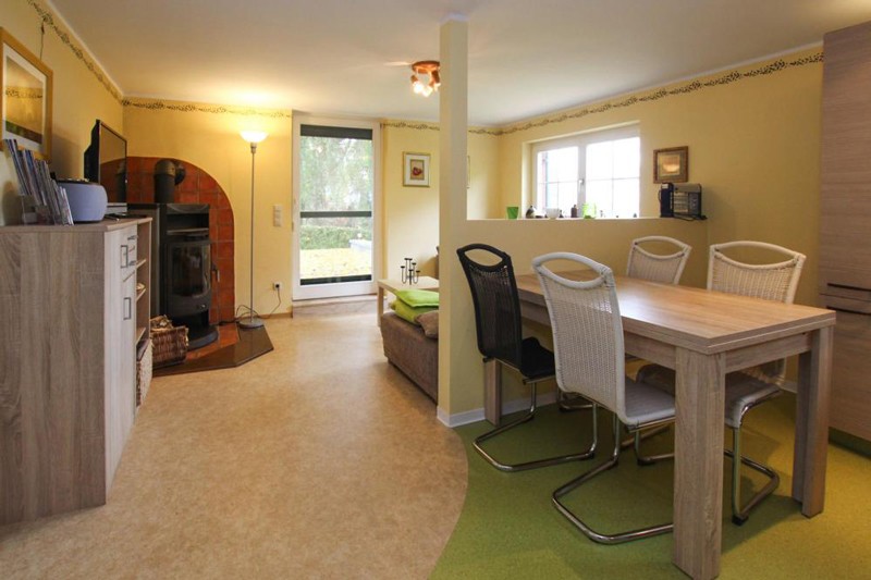 • Wohn-/Esszimmer inkl. Couch & Kamin, TV, Küchenzeile, Esstisch mit 4 Stühlen