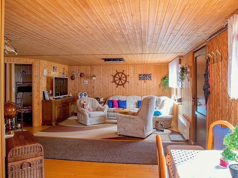 Im großen Wohnzimmer gibt es 1 Zweier-Schlafsofa. Alternativ können auch 2 Zustellbetten aufgestellt werden.