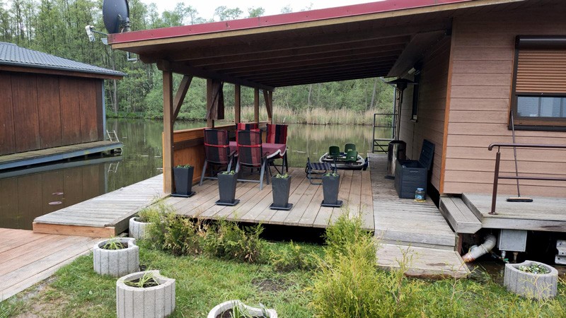Der Wohnküche vorgelagert befindet sich ein 10 m² großer, möblierter Balkon mit herrlichem Ausblick auf den Müritz-Havel-Kanal und und die vorbeifahrenden Boote. Über die Badeleiter gelangen Sie bequem ins Wasser zum Schwimmen.