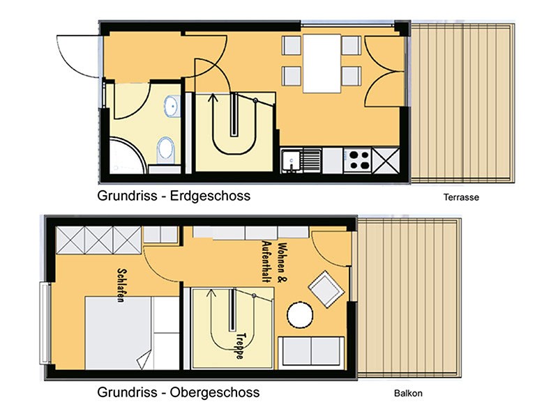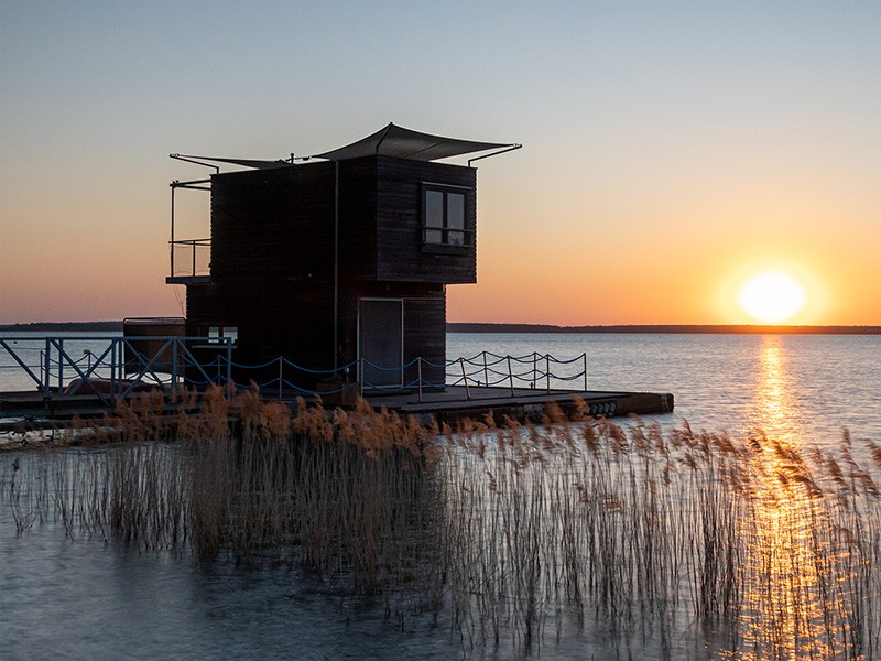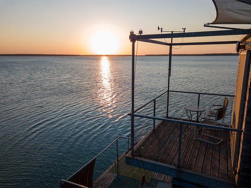 Das zweigeschossige schwimmende Ferienhaus (Floating House) hat einen durchdachten Grundriss und eine moderne Innenausstattung. Auf 40 m² Wohnfläche und mit zwei Terrassen Raum für einen entspannten Urlaub für 2 - 3 Personen. Es ist ausgestattet mit Elektroheizung. Die hölzernen Terrassenböden in maritimen Stil werden im Wohn- und Schlafbereich als hochwertiges Parkett fortgeführt. Die Farbgestaltung ist in Naturtönen gehalten. Dezente Sandfarben erinnern an helle Strände.