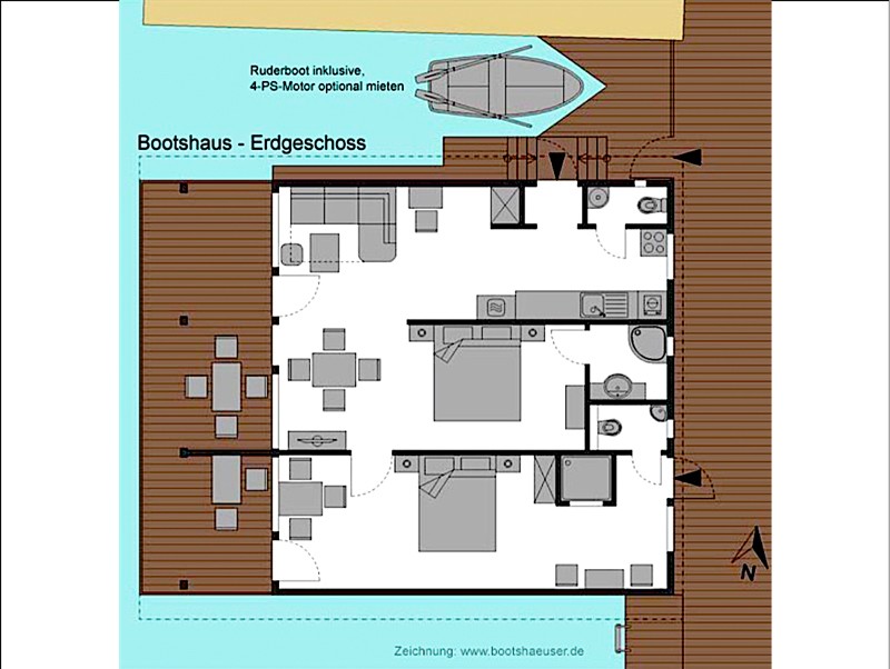 • zweiter Liegeplatz für eigenes, mitgebrachtes Boot (Bootsgarage unter dem Bootshaus)