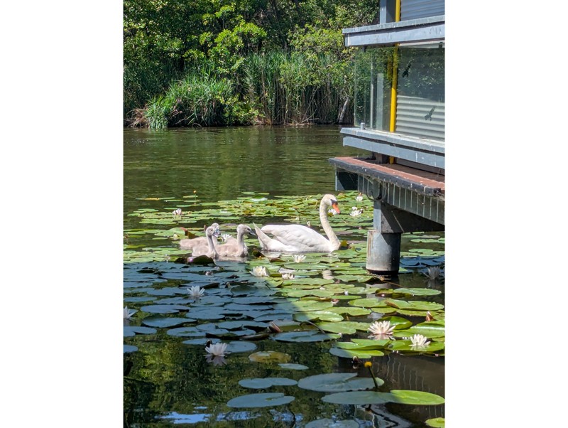Erfrischt euch im kühlen Nass direkt vor dem Bootshaus oder in den umliegenden, wunderschönen Seen. Eine kleine, schattige Badestelle befindet sich in Laufweite des Hauses. Erlebt die unberührte Natur hautnah: Stockenten, Schwäne, Graureiher, Schwalben und Nutria sind häufig am Bootshaus Mirow zu sehen. Wenn ihr leise seid, könnt ihr sogar den seltenen Eisvogel entdecken, der hier wohnt.