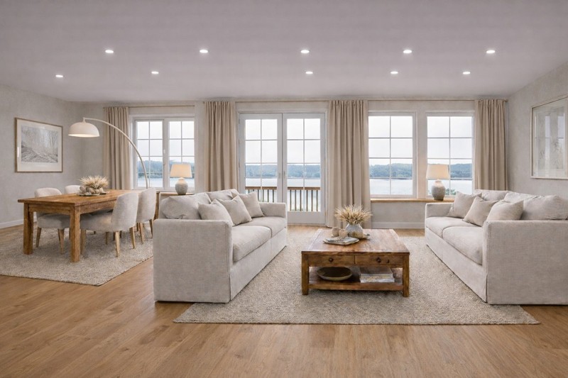 • Die 3D-Visualisierungen von den Bootshaus Innenräumen zeigen zu 99 % die zukünftige Möblierung.