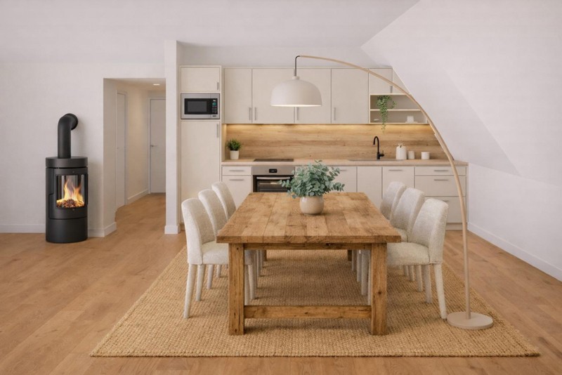 • Das Wohnzimmer verfügt zusätzlich über einen Kamin-Pelletofen.