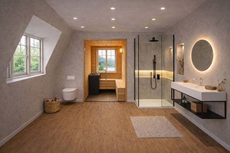 • Duschbad-1 (7 qm) mit eigener Sauna, begehbar aus Schlafzimmer-1